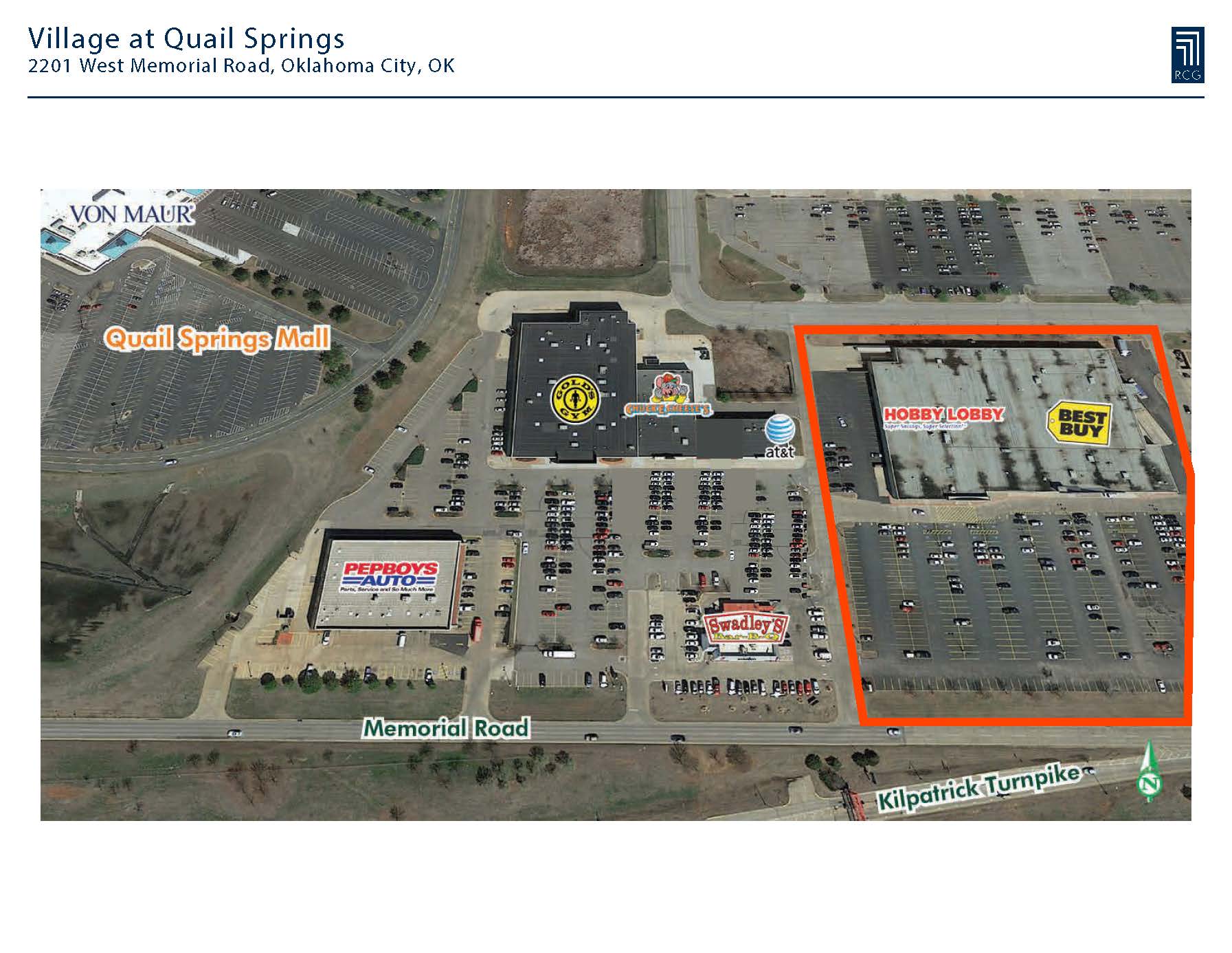 Positioned next to Quail Springs Mall, anchored by, Hobby Lobby, Best Buy, and Gold’s Gym, this center offers great visibility from Memorial Road and the Kilpatrick Turnpike. Neighbors Include − Quail Springs Mall, Best Buy, Pep Boys, Swadley’s, Hobby Lobby, Toys R Us, McDonald’s, Dick’s Sporting Goods, Super Target, Home Depot, PF Chang’s, Marshall’s, DSW Shoes, David’s Bridal and many more.